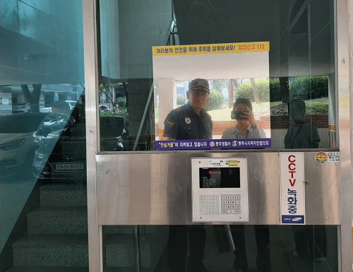 최근 1인 가구 증가 추세에 따라 사회적약자 대상 범죄 사전 차단을 하고자 112신고 분석 결과를 기반, 범죄취약지 및 1인 가구 등 원룸 밀집 지역 주변 유해 요소 점검을 실시하고 건물 출입구에 충주서 자체 제작 안심거울*을 부착하는 등 선제적 범죄 예방 활동을 전개하였다.