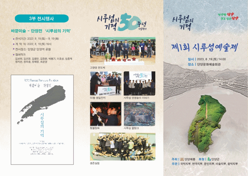 충북단양군에서시루섬의기적을기념하는‘제1회시루섬예술제’가열린다.사단법인단양예총이주최·주관하고단양군이후원하는이번예술제는오는19일단양문화예술회관과단양역공원등에서3부로나눠진행된다.시루섬예…